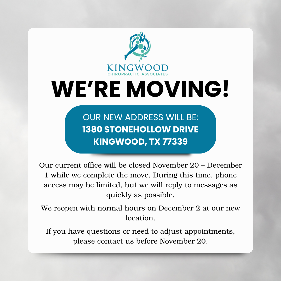 Contact Kingwood Chiropractic Associates to schedule an appointment or to request additional information about our services. We look forward to hearing from you.